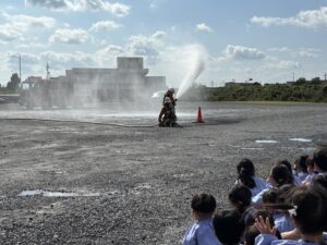 目の前で放水の様子を見せてもらいました。